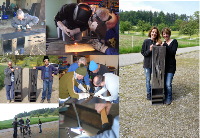 Die schweissbar ist eine kleine Werkstatt, aufgebaut, eingerichtet und betrieben von Pele und Fredy. Die schweissbar ist unser Hobby und Ausgleich zu unserem beruflichen Alltag. Wir haben die Werkstatt selber aufgebaut und einen Teil der Einrichtung selbst gemacht. Unsere Arbeitstische wurden von uns auf unsere Masse gebaut und mit einer stabilen Arbeitsfläche aus Holz versehen. Die Schmiedeesse haben wir einer Feldesse nachempfunden, einzig die Pfanne ist zugekauft. Die stufenlose Regulierung des Ventilators hat uns Salvi gebaut.